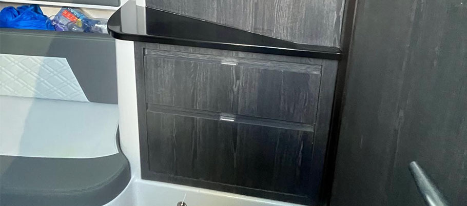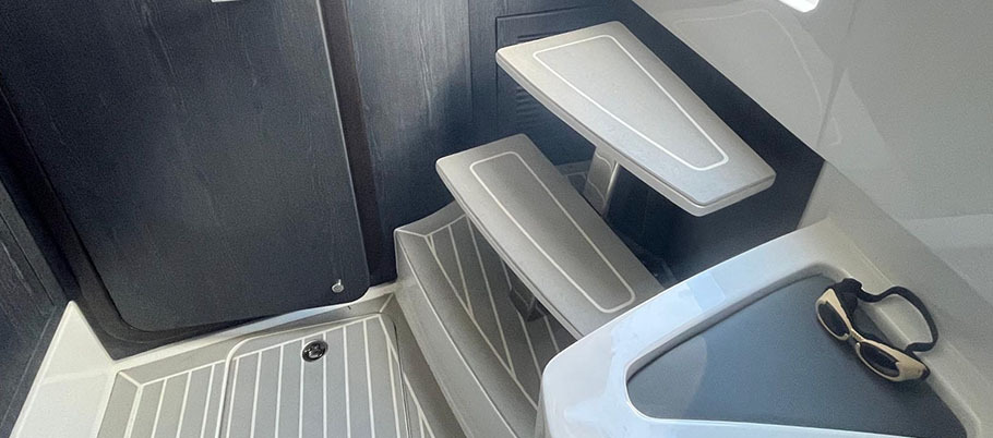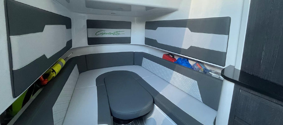 Spacious cabin with an enclosed head, and a U-shape seating and table that can be converted into a day bed.